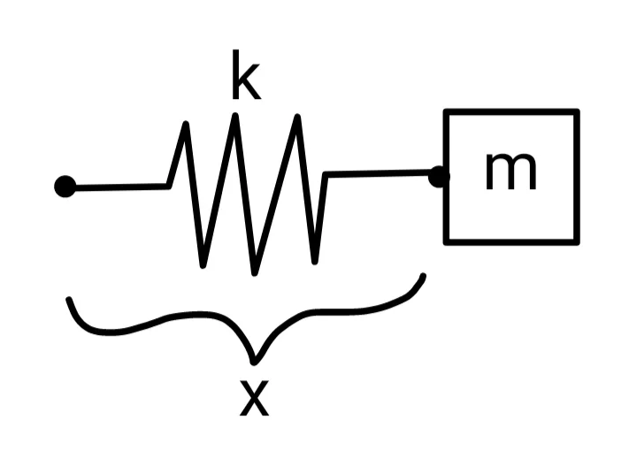 A harmonic oscillator is a mass m on a Hookean spring. The spring force is \(F = -kx\), where k is the spring constant and x is the displacement of the mass.