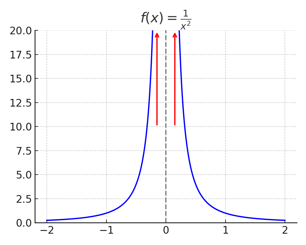 What is the behavior of a function as its argument approaches a certain value? For example, what happens to a function near boundaries of its domain? Near “holes”? Under “extreme” cases, such as when something gets very small?